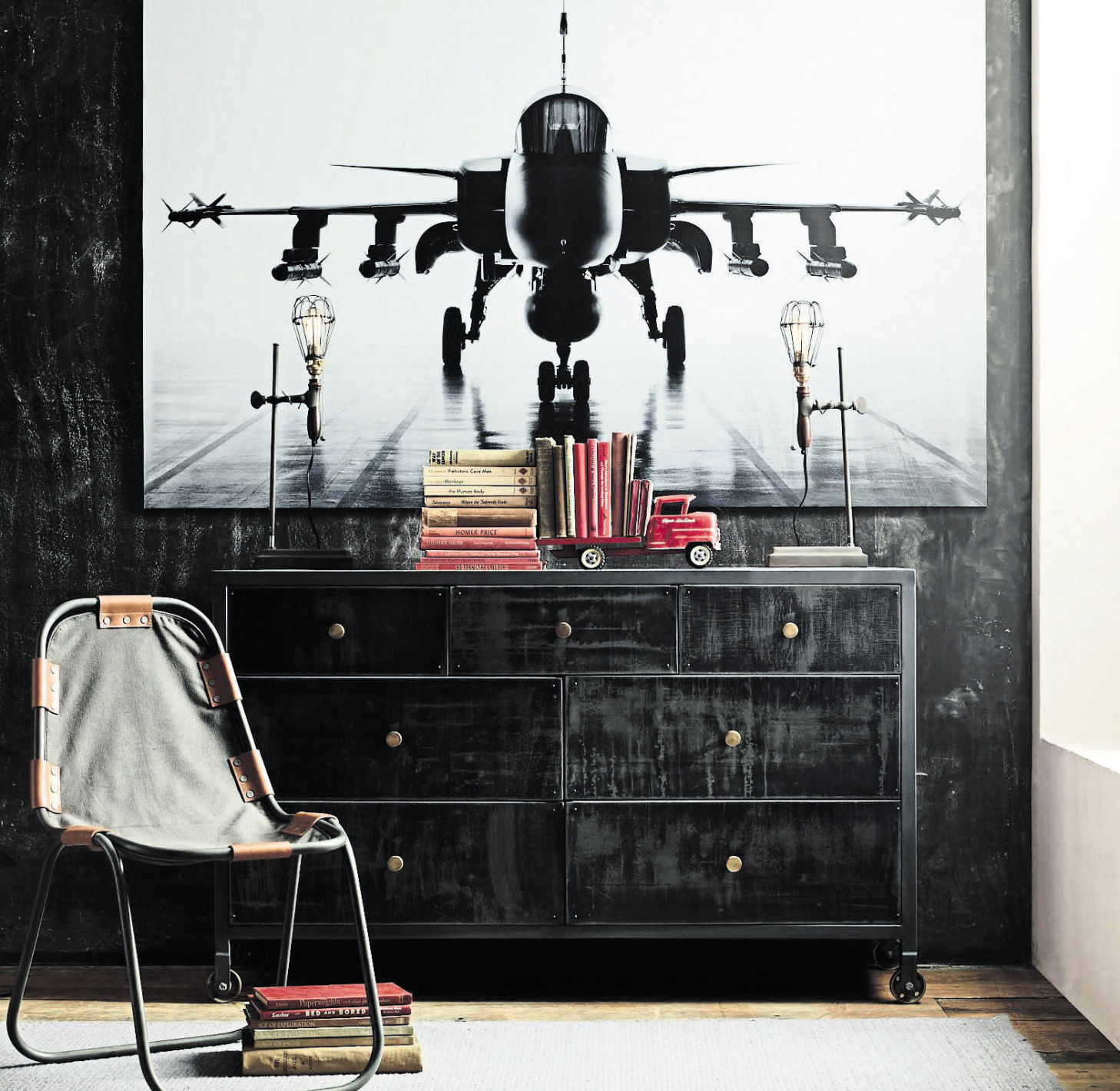 RH Baby & Child has dramatic murals of constellations, maps and jet planes. Minted also has art to spark a child’s flight of fancy.